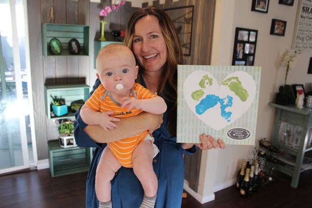 Valentines day is still going strong at our house! I had some friends over yesterday for a craft day and we made a few projects including this adorable baby valentine footprints craft. It is a perfect gift for my friend Lydia’s husband from their son Parker (6 months old).