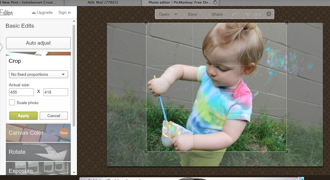 Picmonkey.com- This website is an awesome photo editing tool for many different things, including cosmetic corrections! First open your picture then go to CROP on the right hand side. I do not think you can crop to exact measurements so I would crop it to one of their preset dimensions and just plan on cutting down to whatever size you need size after you print. Then Click on TEXT in the lefthand window and you will be able to add text to your picture after choosing the font you want. You can right click on your text after you have written it to choose from more options. After you are all finished then save it to your computer.