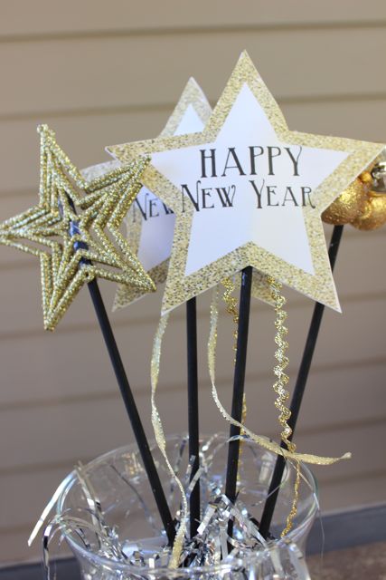 Happy New Year’s Eve, it is finally here! Most people have already started their countdown and I am excited to see lots of friends and family using my New Years Activities for kids printables I posted HERE. So this morning I was thinking that I wanted to have a couple little favors to give the kids when they arrived at my house! I looked around my house and found the materials to make these New Year’s Eve wands and noisemakers for kids. We are having three little girls under the age of two at my house tonight along with a 6month old boy so I was thinking that wands and shakeable noisemakers would be a perfect thing for them to play with and get in the spirit of New Year’s Eve!