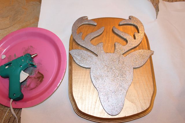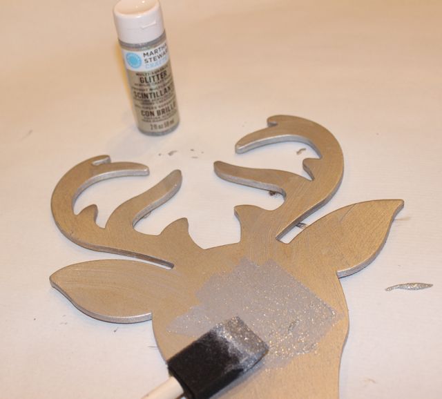 5. The deer head was $1 and plaque was $2 at Michaels. I spray painted both first, then I painted the deer with Martha Stewart silver Glitter paint