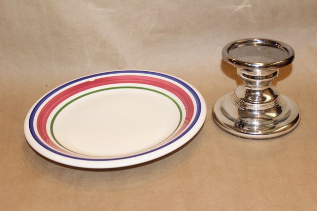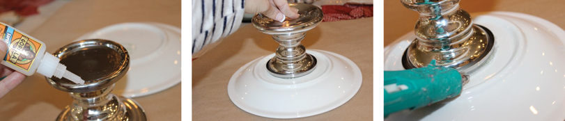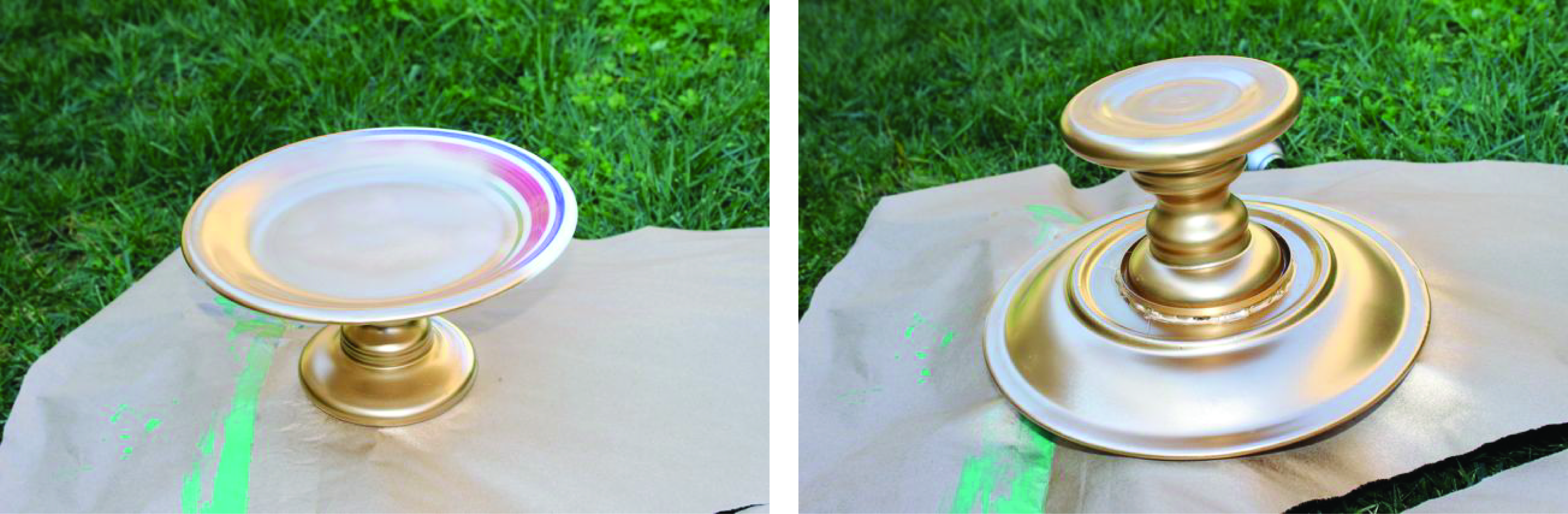 I made this cake stand for my guest post on Niki’s Sweet Side (an amazing dessert blog, check it out!) but will give you a quick snippet here for anyone interested in making this. Simply glue a base (candle holder, tea cup, bowl) to a plate then spray paint.