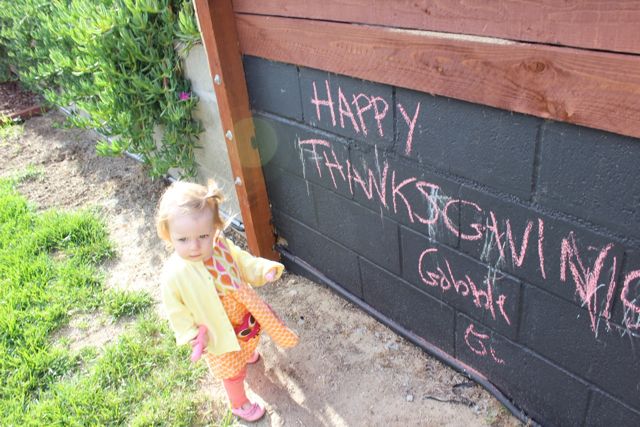 And Voilla!! Finished chalkboard for your kids to play with. It does not erase very well so we hose it down whenever Scarlett wants a clean palette, or a new holiday has arrived (it now says Happy Holidays!)