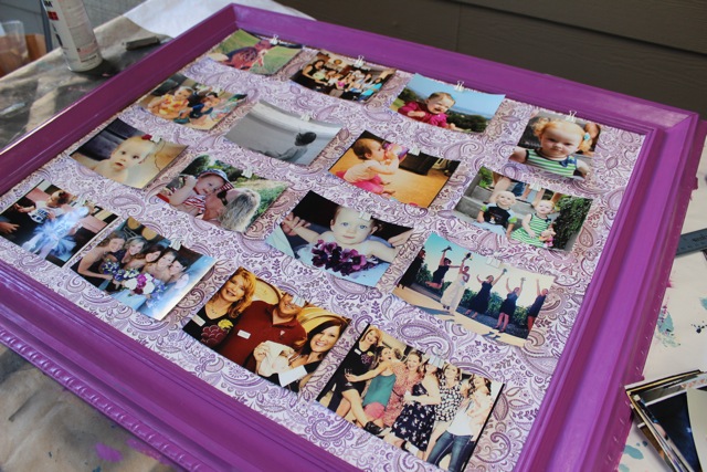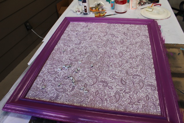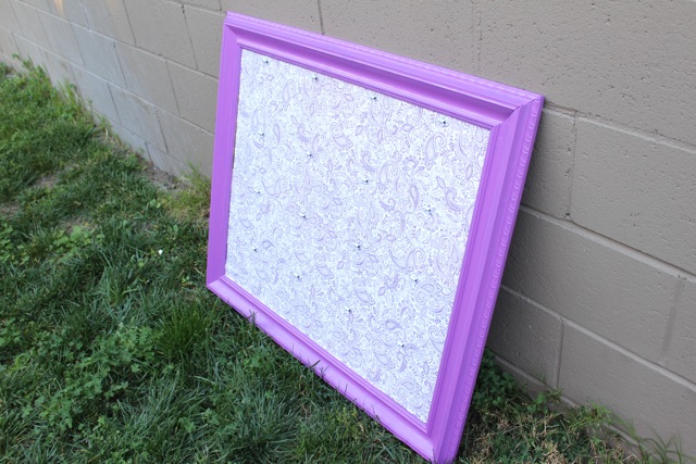 1. We sprayed the frame with primer and painted purple, sorry I didnโt take pictures of that.. I was busy stuffing my face with mexican food and keeping the kids occupied.