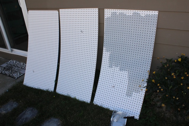 Then I went to Home Depot and got some peg board. $4 a sheet, I got 3 sheets. I painted them grey of course. I love grey.