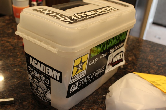 I finally did it. After years of hoarding, moving, crafting, and more recently blogging... I decided to build a craft space. I saw so many amazing projects the first few weeks in January, it seemed like everyone was getting organized except for me. I initially just looked with envy not entertaining the idea of organizing my crafts because a) I have no craft room to put everything and b) I have no money to spend on a system. Just so you understand what I am working with… here is an example of one of my craft storage bins. Yes.. I still keep stuff in here.