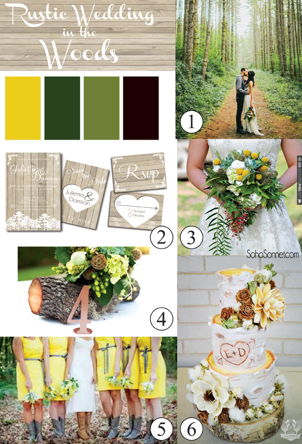 Planning a rustic wedding and looking for inspiration? Check out this Rustic wedding in the woods inspiration board that I created for my Etsy Invitations (below). I am selling these invitations on Etsy and I wanted to share the gorgeous pictures I found that inspired these invites. All credits are listed below, you can visit the individual websites for these ideas and more! If you are interested in these invitations visit My SohoSonnet Print Shop on Etsy. I also do custom work for affordable prices just contact me and let me know what you are looking for.