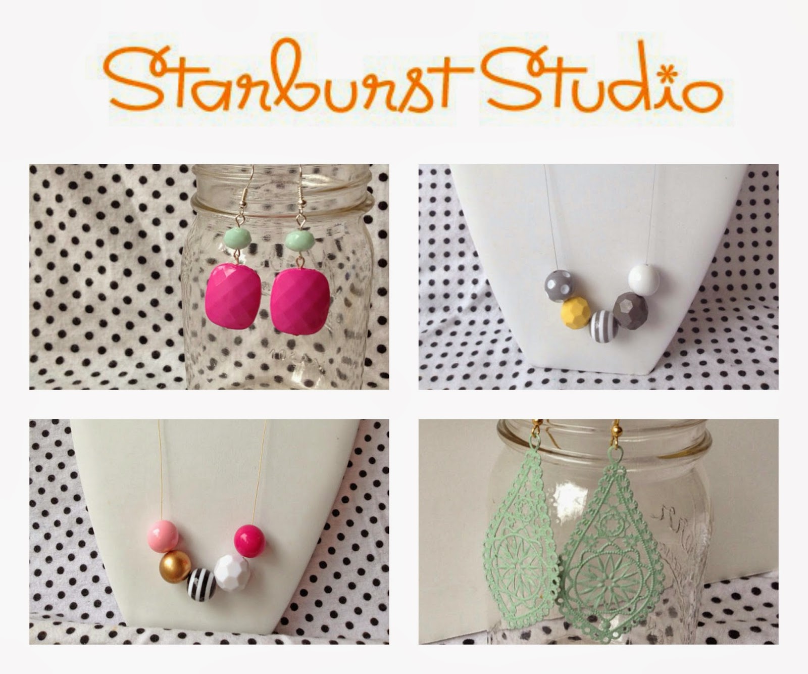This week, we have a giveaway from one of my fave jewelry shops. I found this lady on Instagram and am in love with her unique necklaces and earrings! Katie, of Starburst Studio, makes all her jewelry by hand. Plus - she is a total sweetheart - which makes me love her shop all the more!
